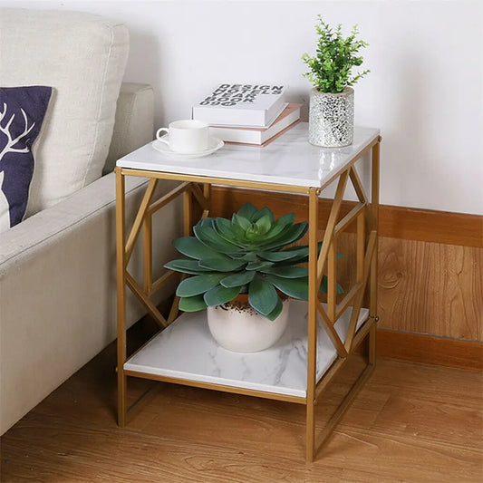 Gold White Entryway Table, LED Lights, Faux Marble, Veneer