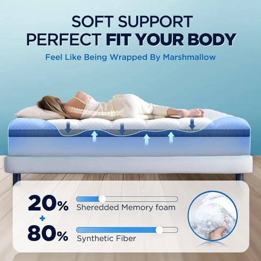 Mattress Topper, 5-Zone Memory Foam, Cooling Gel, Pressure Relieve, Queen / Full