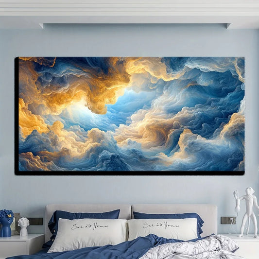 Modern Art Cloud Wall Painting, Solid Pine Wood Frame