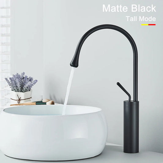 Black Brass Art Faucet, Hot Cold Tap, 360 Swivel ,Waterfall