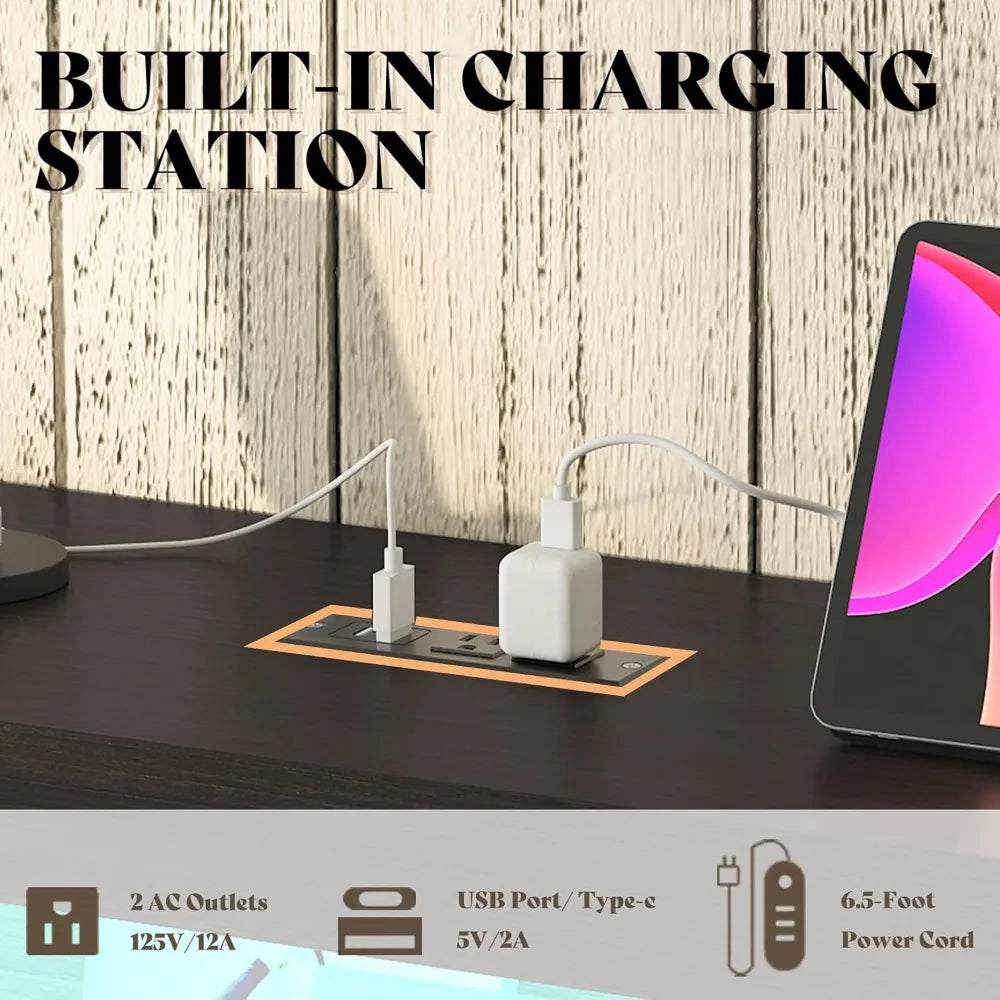 - Charging Station: Farmhouse wood bed with 2 AC outlets, a USB port and a Type-C port. Make it easy to power up your cell phone, tablet or other electronic devices to ensure they are always available.